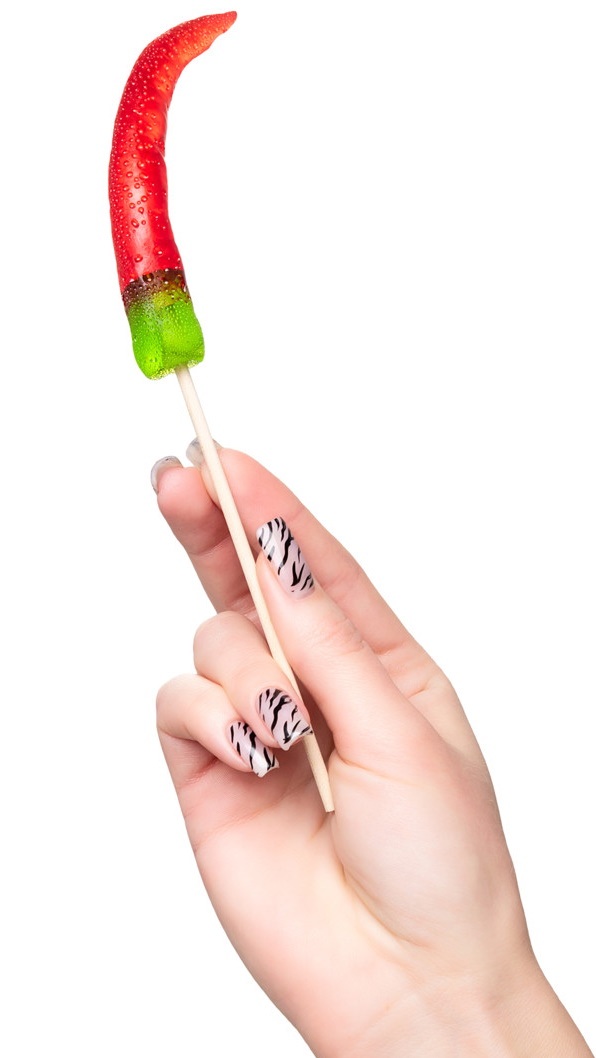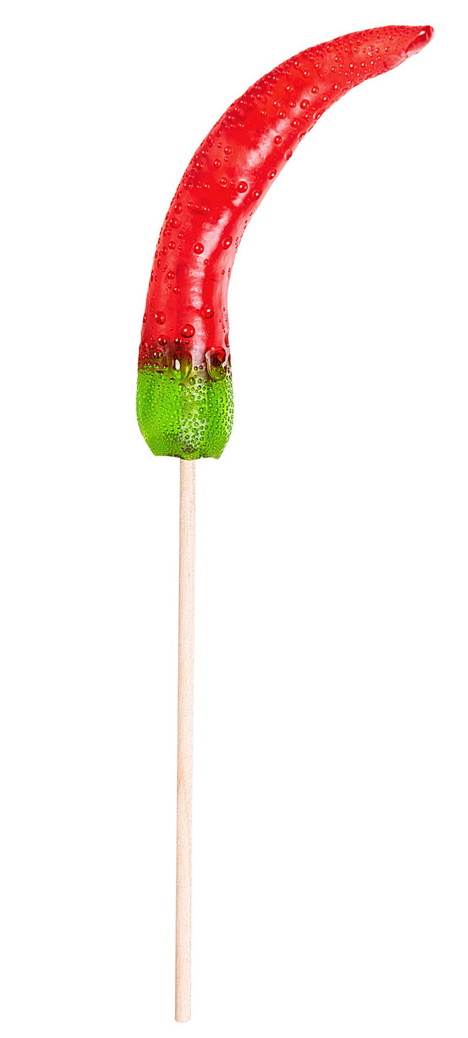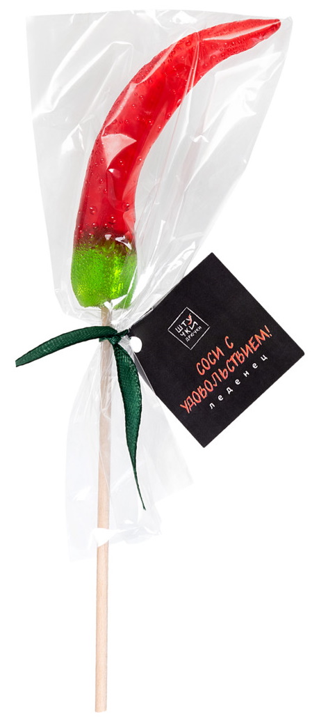 Яркая и вкусная леденцовая карамель на палочке в форме перчика станет приятным дополнением подарка на любой из праздников!