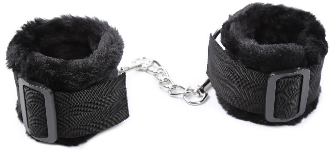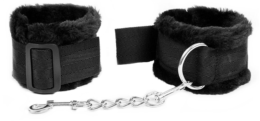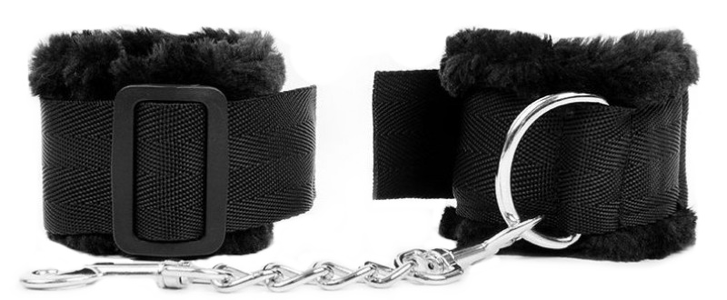 Наручники не причинят боли, так как их внутренняя сторона отделана мягким мехом. Соединяются между собой цепочкой с двумя карабинами на концах.