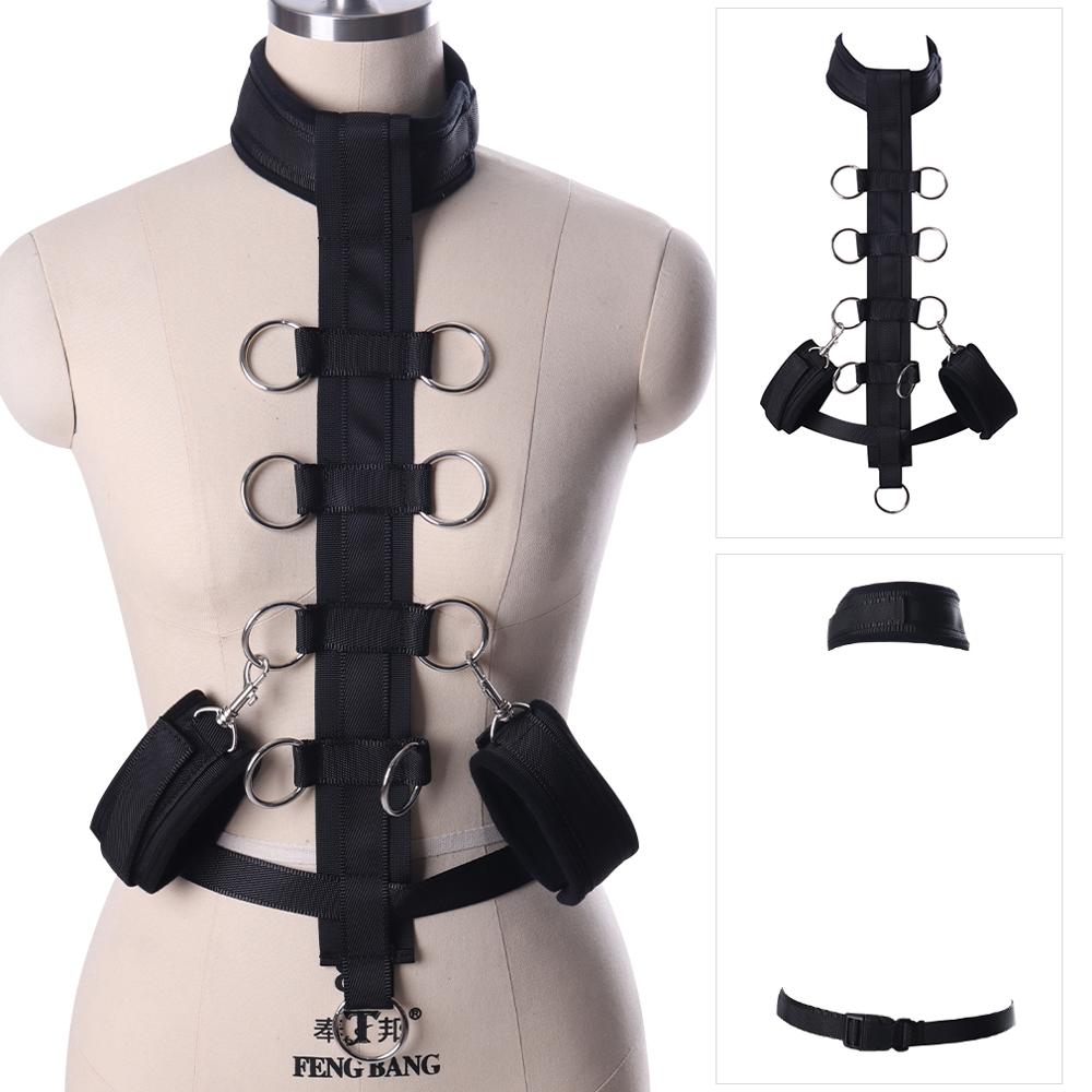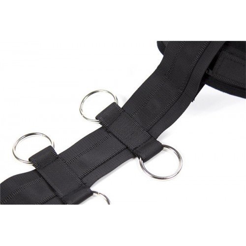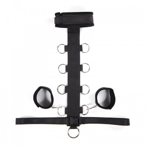 Бондажный ремень совмещён с ошейником и фиксаторами для рук, поэтому прекрасно подойдёт как начинающим, так и опытным практикам субкультуры БДСМ!