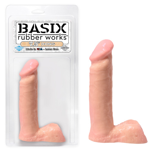 Прямой фаллоимитатор из телесного упругого материала TPR с рельефной мошонкой. Длина донга с большой головкой от мошонки равна 16 см, максимальный диаметр 5 см.