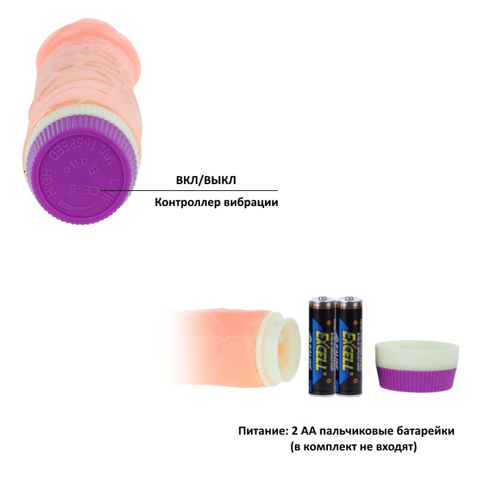 Настройка осуществляется плавно регулятором в основании вибратора. 2 батарейки размера АА (в комплект не входит).