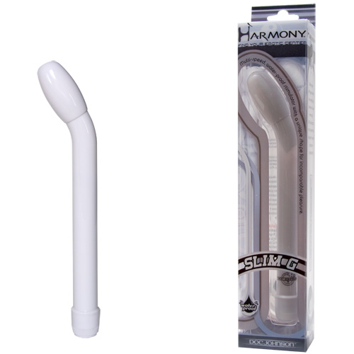 Тонкий вибростимулятор из глянцевого качественного пластика белого цвета.
