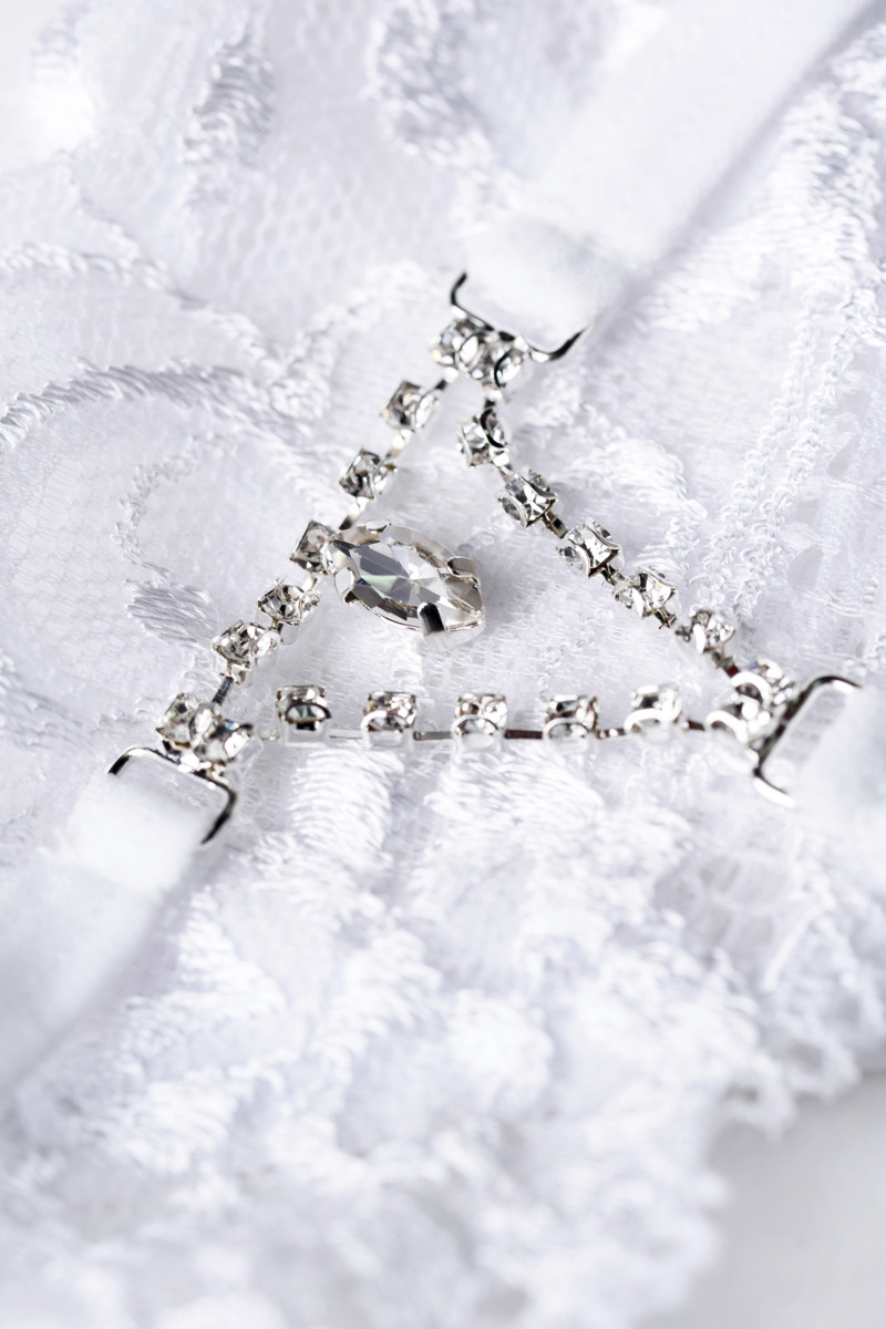 Элегантные кружевные трусики с изящной деталью на одной из лямок - подчеркнет вашу индивидуальность. Тонкие, мягкие лямочки и хлопковая ластовица обеспечат комфортные ощущения. Ниспадающие нити из страз создают сексуальный и игривый образ.