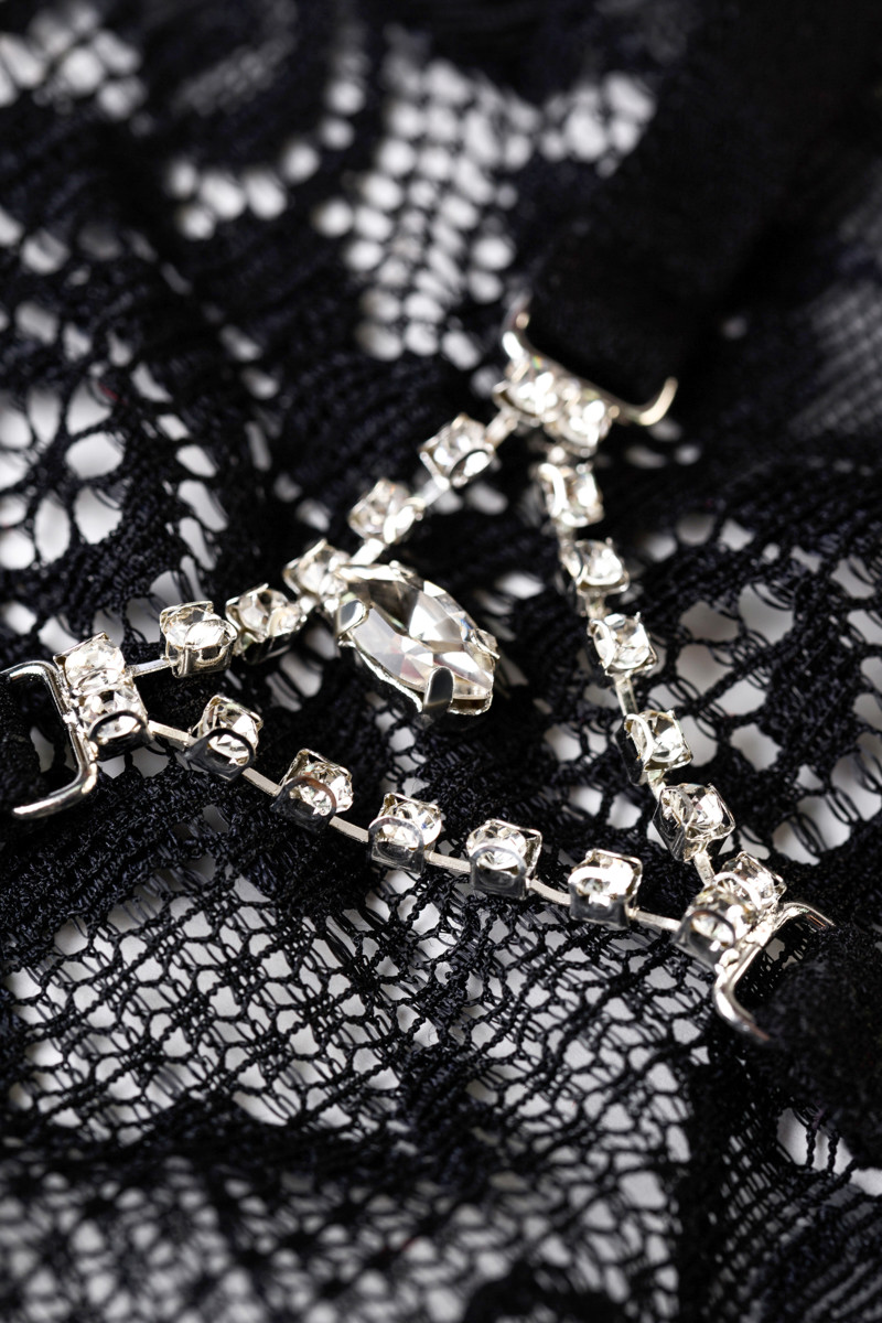 Элегантные кружевные трусики с изящной деталью на одной из лямок - подчеркнет вашу индивидуальность. Тонкие, мягкие лямочки и хлопковая ластовица обеспечат комфортные ощущения. Ниспадающие нити из страз создают сексуальный и игривый образ.