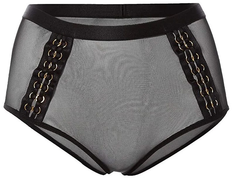 Трусики Ненасытная Глория с высокой талией выполнены из полупрозрачного черного материала и украшены оригинальными вставками!