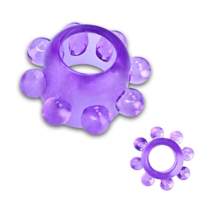 Тянущееся кольцо из фиолетовой эластичной термопластичной резины на пенис со стимулирующими элементами для обоих партнеров.