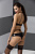 Лиф и трусики черного цвета оснащены украшением в виде бретелей, которые помогают подчеркнуть пышные формы, скрывая любые недостатки. Особенно выигрышно комплект смотрится в комбинации с чулками, высокими каблуками и прочими аксессуарами.