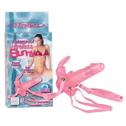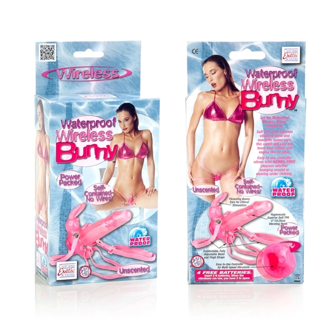 Зайка-стимулятор клитора на эластичных ремешках, крепящихся к телу девушки.