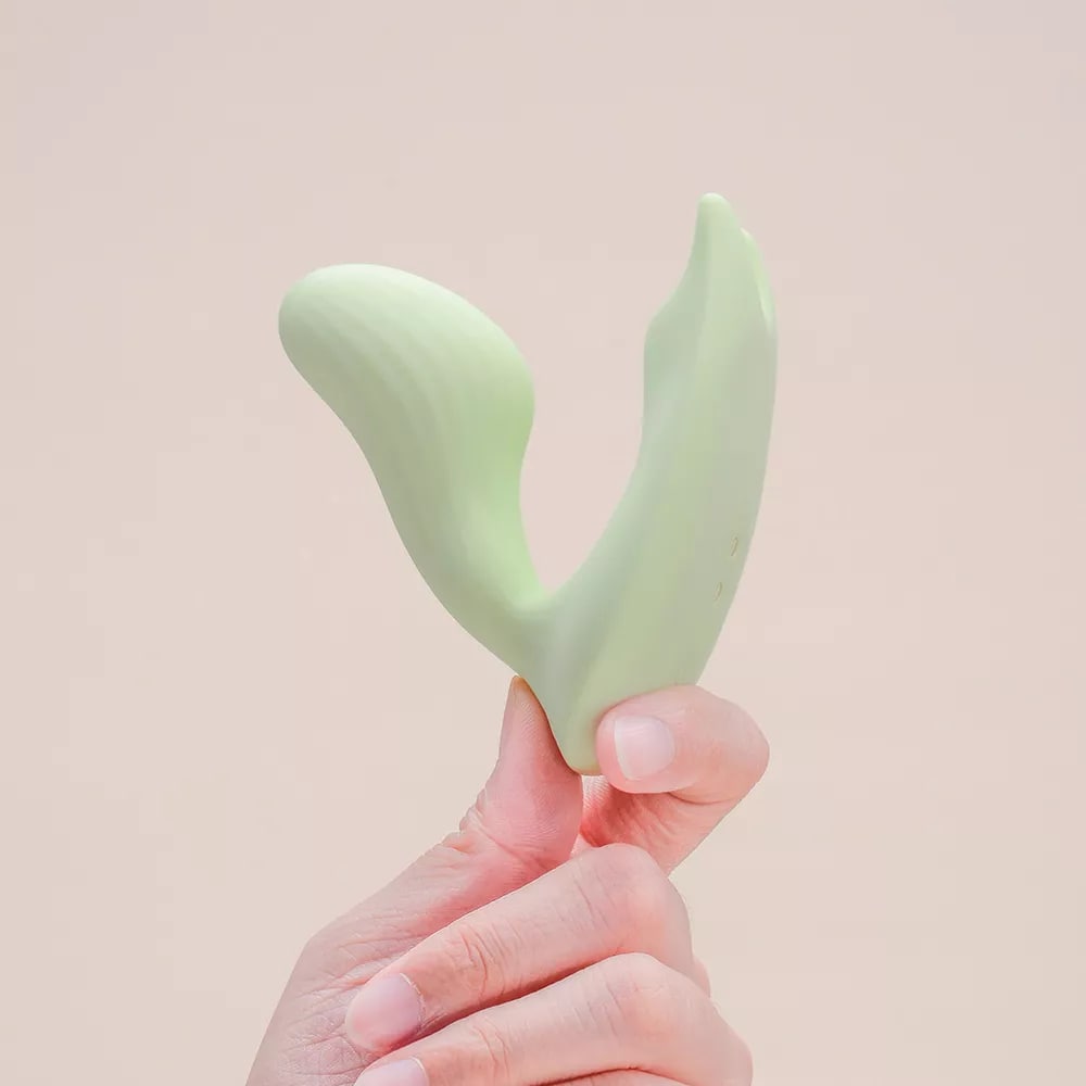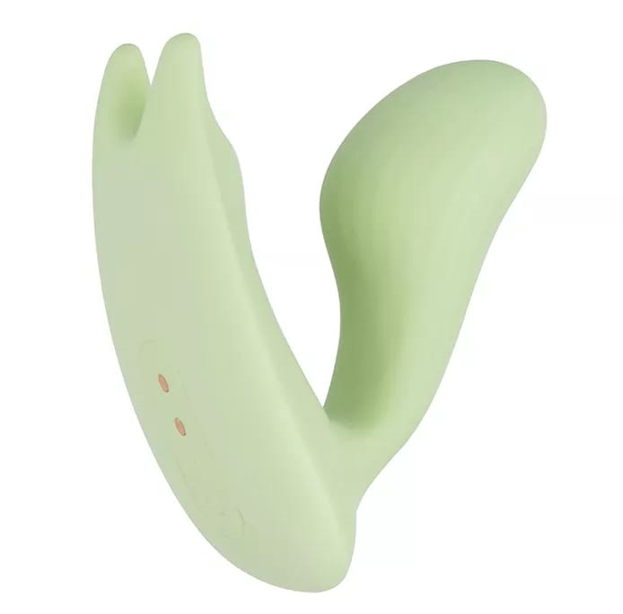 Вибратор имеет два кончика и два мотора: вагинальный - диаметром 3 см - имеет округлую плавную форму, а второй - широкий и плоский, комфортно ложится на зону клитора.