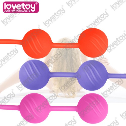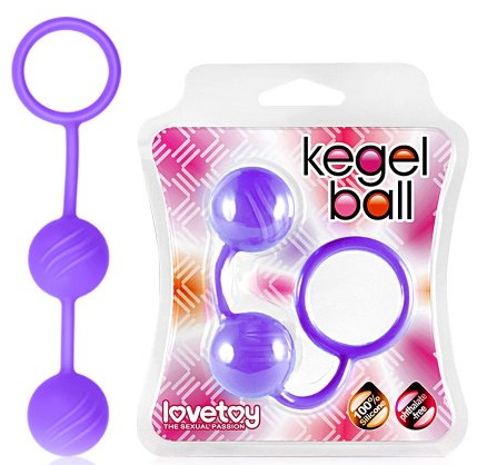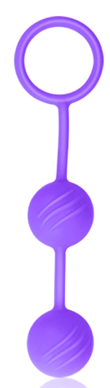 Фиолетовые вагинальные шарики.На каждом шарике рельефный рисунок. Шары покрыты медицинским силиконом, соединяющая их нить также из гипоаллергенного медицинского силикона, колечко на конце поможет легко извлечь тренажер интимных мышц после использования.