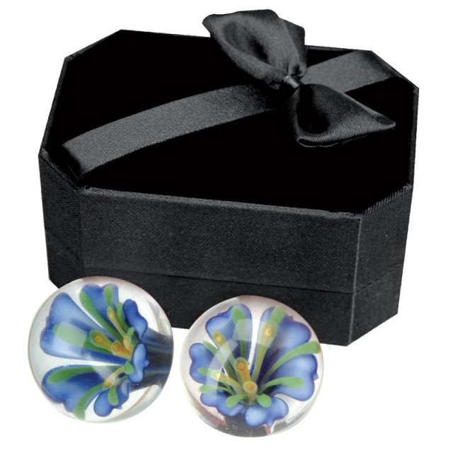 Стеклянные шарики с изящными голубыми лобелиями для тренироввки вагинальных мышц.