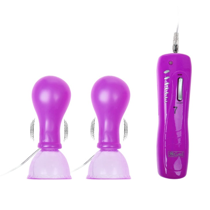 Две вибро-помпы необходимо нежно зафиксировать на сосках, надавив на грушу и откачав воздух из присосок, а затем включить вибрацию.