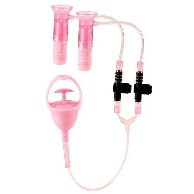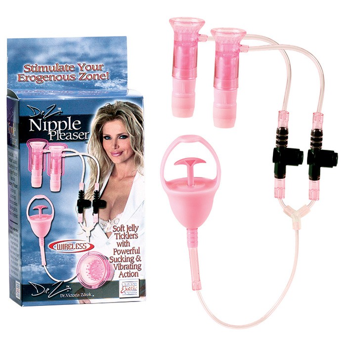 Вакуумный вибростимулятор для сосков от доктора Виктории Здрок. Гелевый вибростимулятор работает от батареек типа "таблетка" (батарейки в комплекте). Вибрация на каждом соске отдельно регулируется. Удобный механизм для откачки воздуха, и два отдельных клапана регулировки давления. Внутри стимуляторов мягкие гелевые шипы для легкого покалывания сосков.