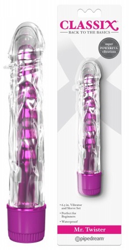 Интересный дизайн с прозрачной силиконовой насадкой и металлическим стержнем, рельефной структуры привлечет Ваше внимание, Вы не сможете пройти мимо этого вибратора!