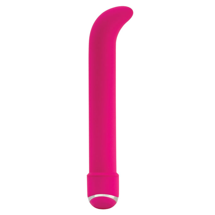 Ярко-розовый вибратор для стимуляции точки Графенберга (точки G) из пластика с нежным шелковистым покрытием.