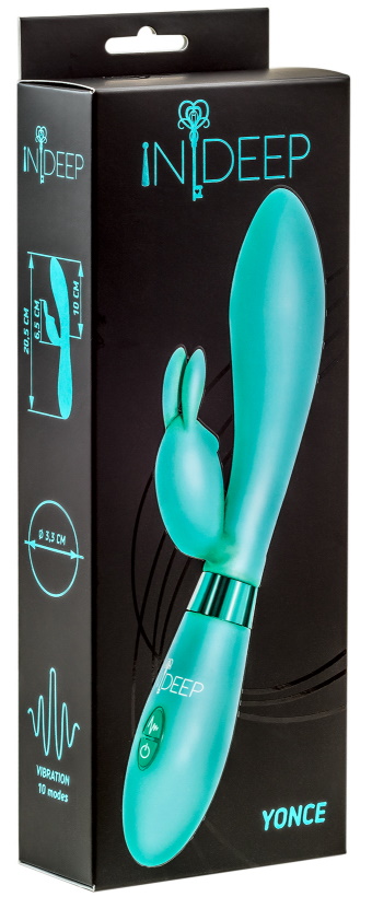 Indeep Yonce снабжен двумя независимыми моторчиками: первый расположен в головке, второй - в отростке для стимуляции клитора.