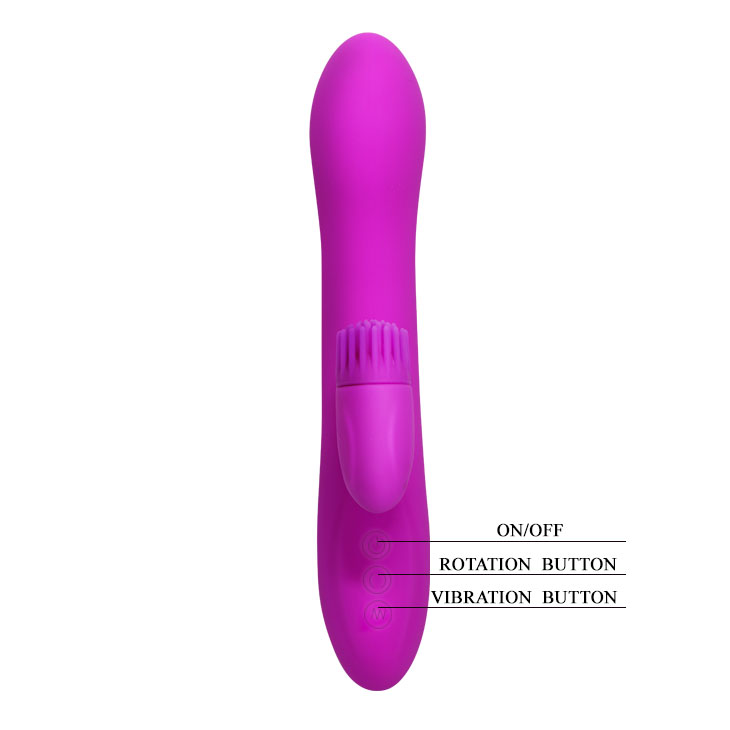 Необычный отросток для стимуляции клитора вибрирует и имеет 4 режима ротации, управляемые при помощи кнопок в основании.