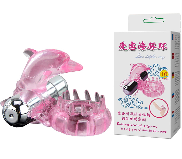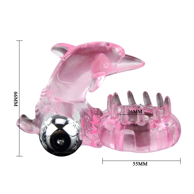 Виброкольцо в форме дельфинчика имеет металлическую пульку с 10-ю режимами вибрации, выполнено кольцо из силикона.