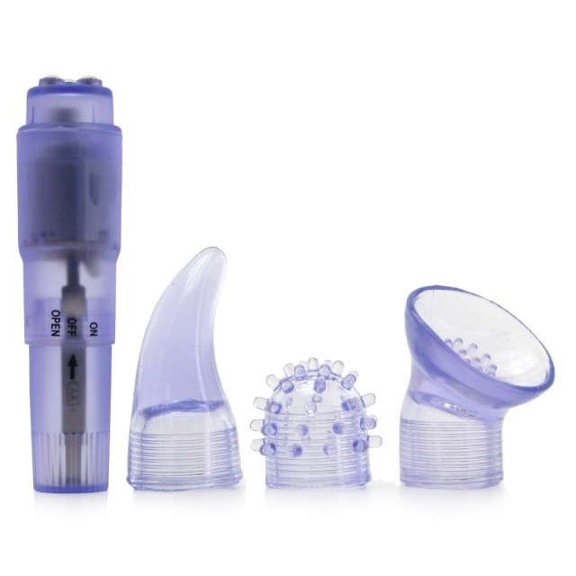 Этот милый маленький набор удовольствия Вы всегда и везде можете взять с собой. Ультрамощный вибратор имеет три дополнительные насадки которые великолепно подходят для стимуляции клитора и сосков.