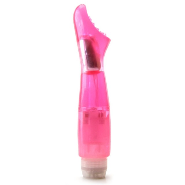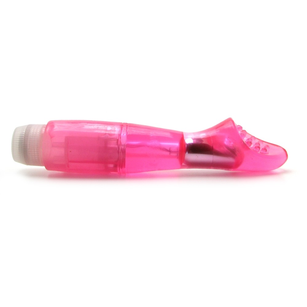 Вибромассажер нежно розового цвета со специальной щеточкой для стимуляции клитора.