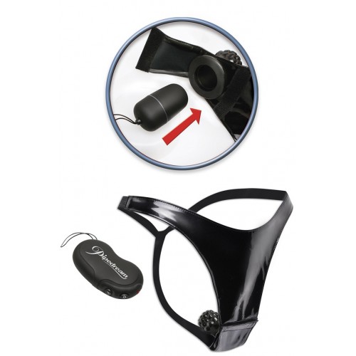 Спрятанное внутри этих сексуальных G-string - мощное яичко, которое имеет 10 функций вибрации, оно управляется с помощью пульта дистанционного управления с эффективнстью до 25 метров.