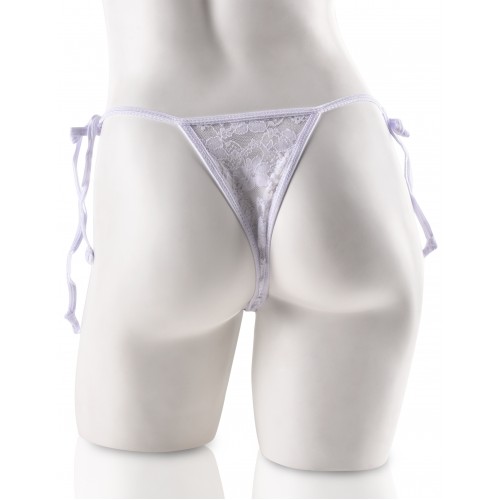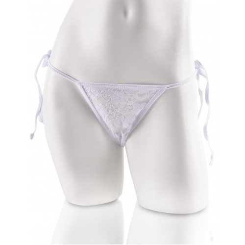 Трусики выполнены из легкого полупрозрачного белого кружева , которое будет