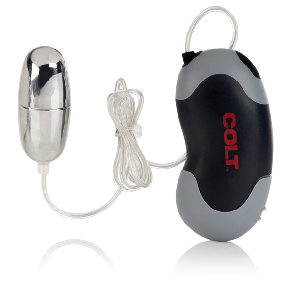 Уникальное водонепроницаемое вибро-яичко из серии Colt. Удобный пульт эргономичной формы имеет кнопку-контроллер, которой переключаются 2 возможные скорости. Сам стимулятор серебряного цвета, из пластика.