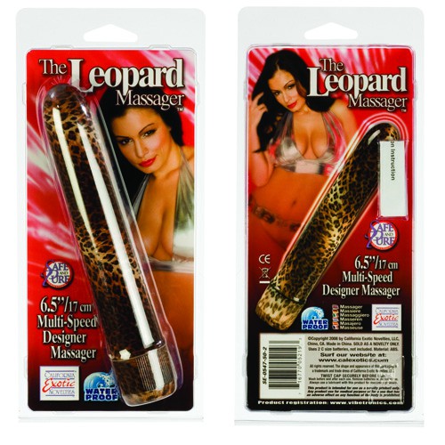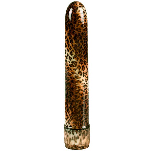 Прямой пластиковый вибратор леопардовой расцветки с глянцевым покрытием.