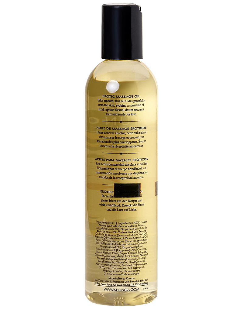 В отличие от большей части средств Shunga, ароматизированных вкусовыми ароматами, запах массажному маслу придают эфирные масла и ароматы, что делает его НЕСЪЕДОБНЫМ.