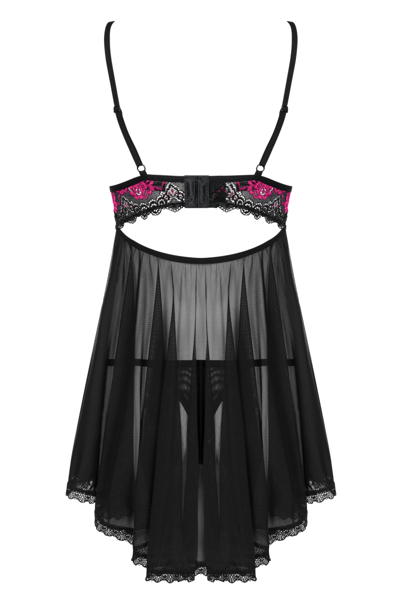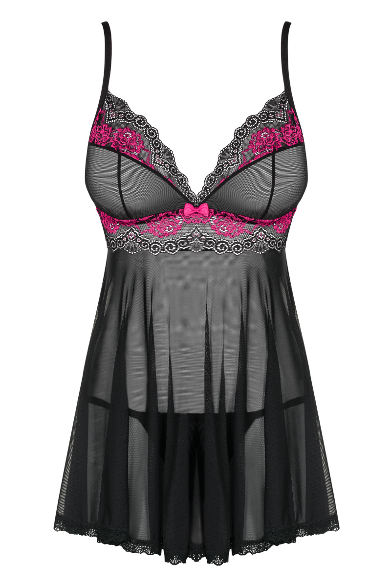Детали: милый беби-долл с розовым цветочным узором, регулируемые лямки - идеальная посадка, многоступенчатая застежка на спине, мягкие чашки, украшенные кружевом - красивый вид бюста, узор под бюстом добавляет шарма, соблазнительный розовый бант, прозрачная, черная сетка, воздушный крой с чуть удлиненной спинкой, деликатные и эластичные ткани.