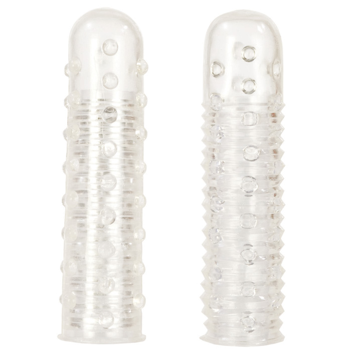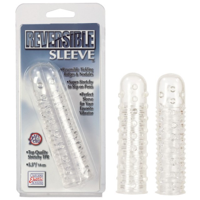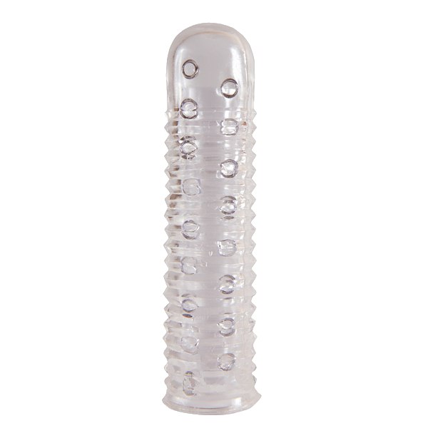 Прозрачная насадка из мягкого, хорошо тянущегося материала TPR. С одной стороны насадка имеет рифленую поверхность, а если вывернуть её на изнанку, то её поверхность покрывают мягкие упругие шарики.
