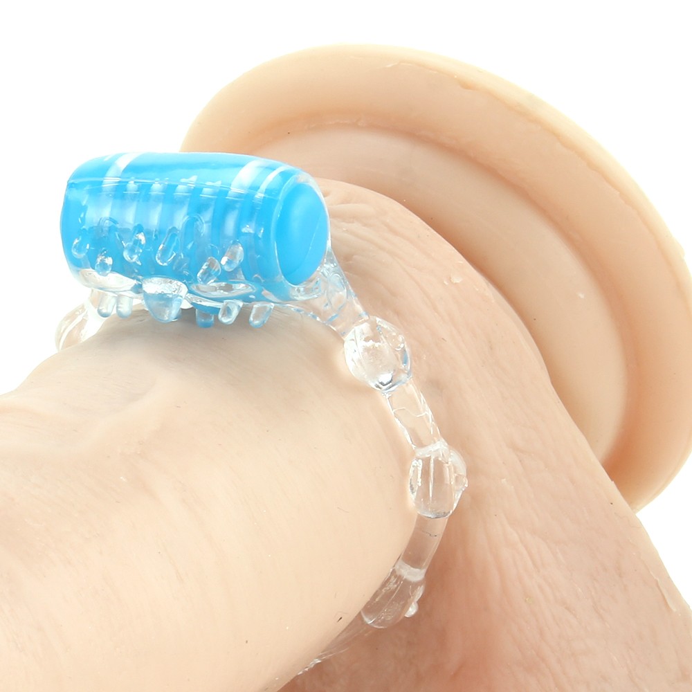 Для стимуляции мужчины по периметру кольца расположены мягкие шарики. Удобная кнопка включения вибрации находится сбоку на стимуляторе.