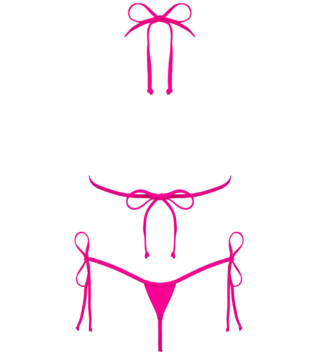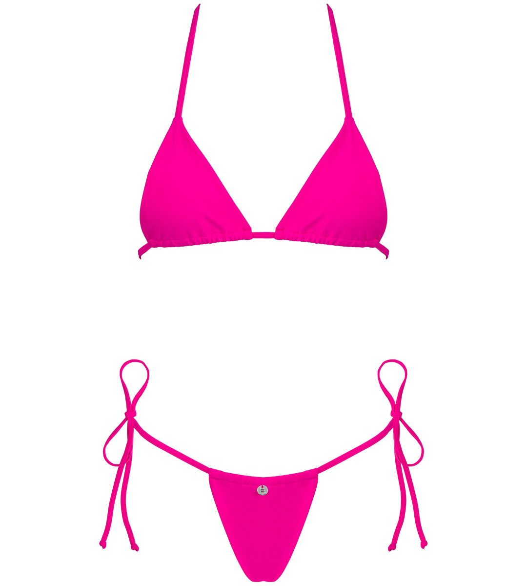 Розовое микро-бикини раскроет все достоинства женского тела и подчеркнет фигуру, а яркий оттенок розового будет идеально контрастировать с цветом загара.