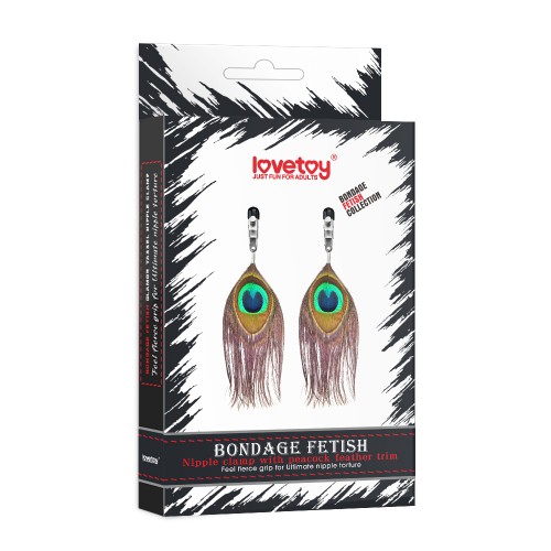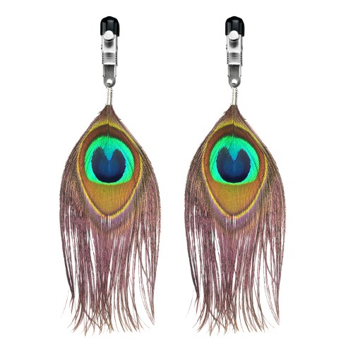 Металлические зажимы на соски выполнены в экзотическом стиле: на концах располагается привлекающее внимание перо павлина, а зажимы имеют специальные мягкие наконечники, оберегающие нежную кожу от повреждения.