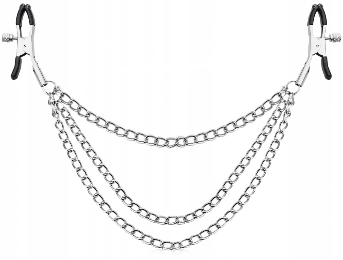 Цепи, которые прикреплены к зажимам, позволят расширить круг воплощаемых фантазий - Вы сможете прикрепить к ним дополнительные аксессуары, утяжелители... или просто тянуть за них, чтобы еще больше обострить ощущения!