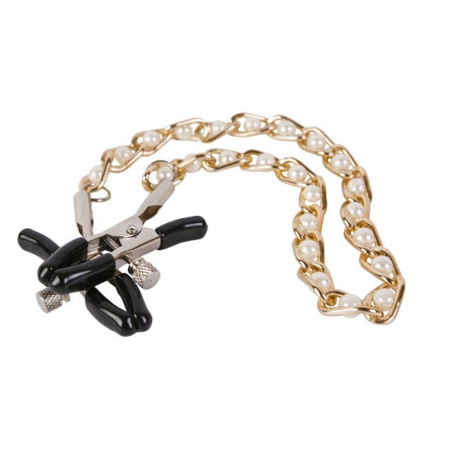 Зажимы изготовлены из прочного металла, сами «прищепки» на кончиках покрыты мягкой резиной для максимального комфорта ощущений. Сила сжатия на сосок регулируется с помощью специального винтика, поэтому вы сможете сами контролировать степень фиксации, переходя от нежных ласк к более жесткой стимуляции. Зажимы соединены изящной цепочкой с бусинками, каждое движение которой будет ощутимо стимулировать сосочки, даря вам ни с чем не сравнимое удовольствие!