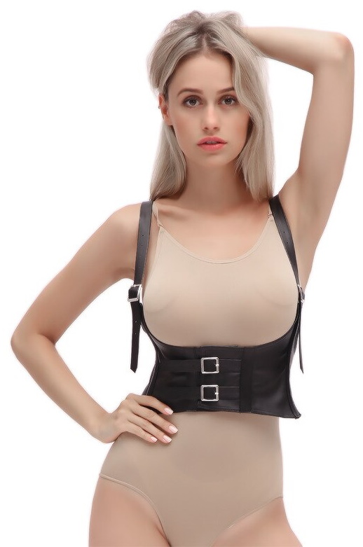 Особое внимание привлекает необычный крой корсета. Изделие надежно держится на теле, приподнимая грудь и делая ее очень аппетитной.