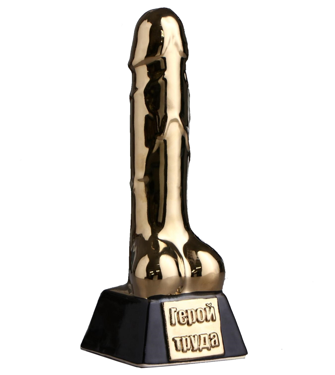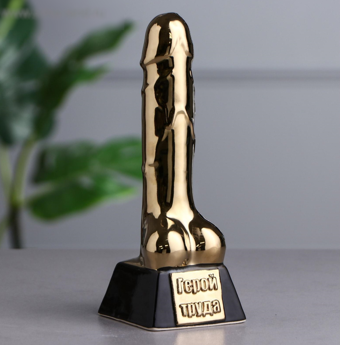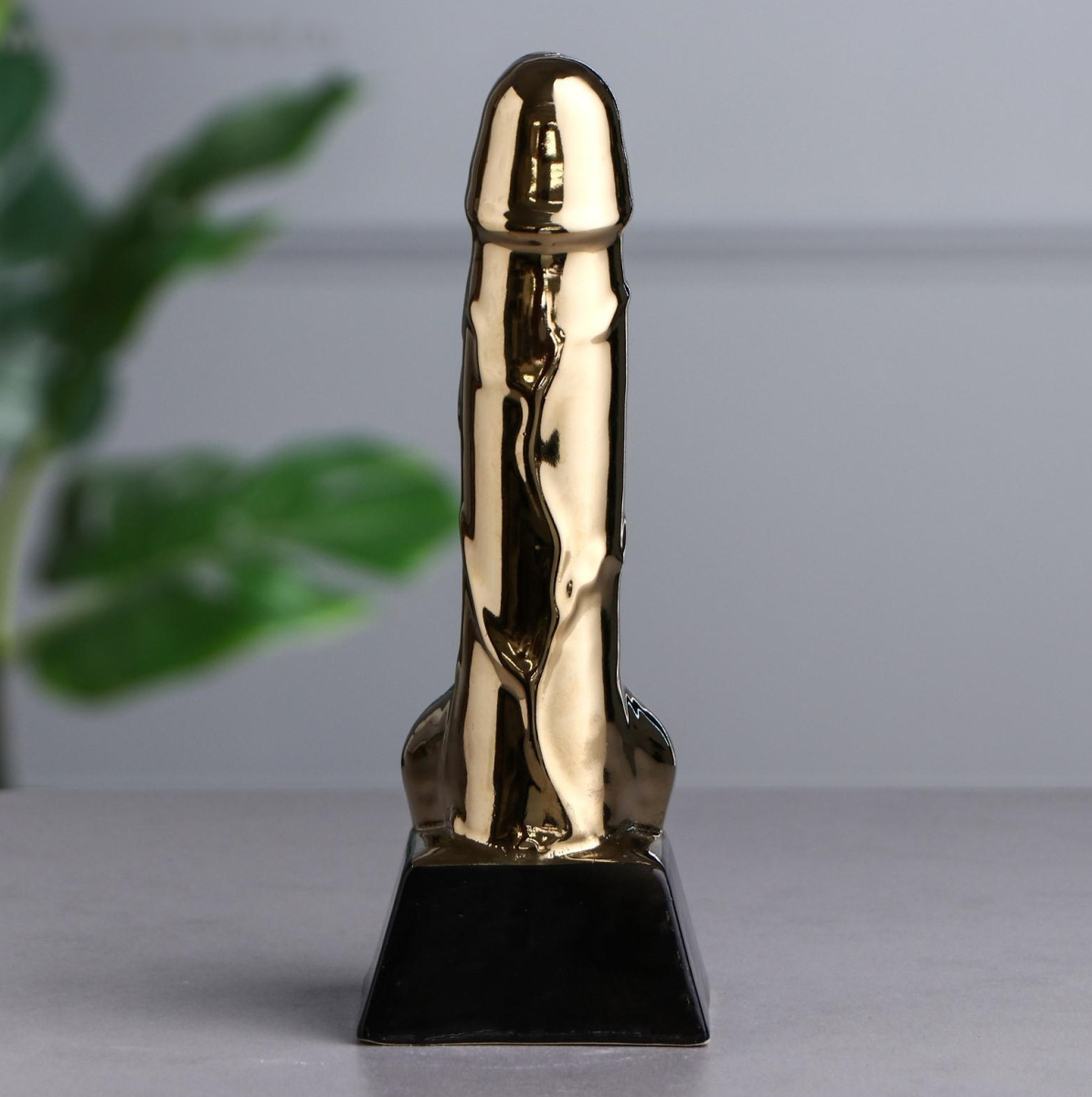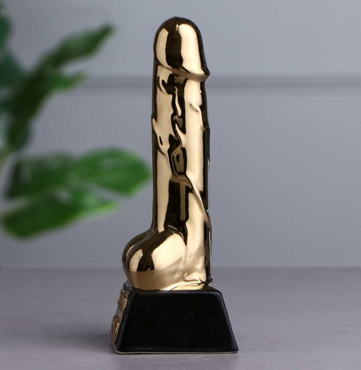 Золотая глянцевая статуэтка выглядит достаточно массивно и дорого, такая вещица может стать отличным подарком для Ваших друзей или коллег.